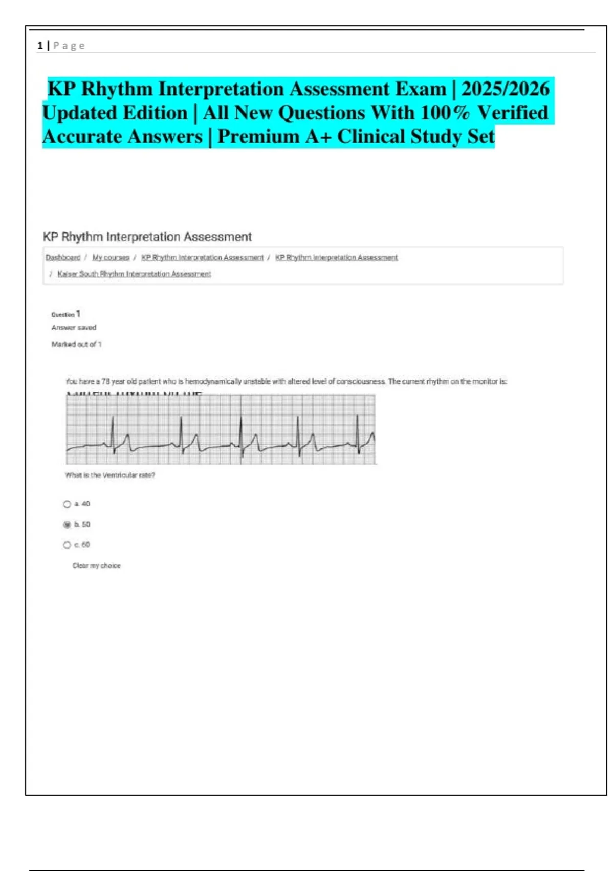KP Rhythm Interpretation Assessment Exam 2025/2026 | 100% Verified Answers | Clinical ECG Study Pack