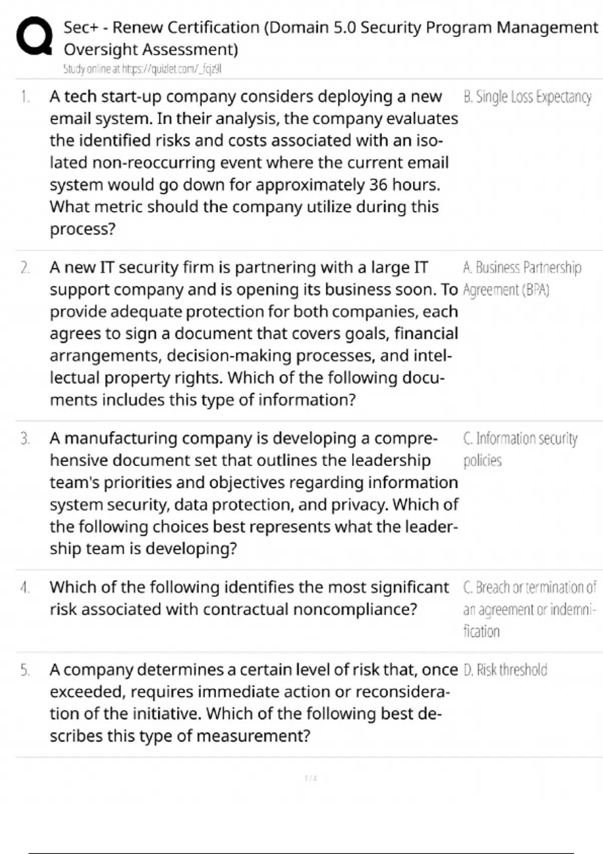 Security+ Renewal - Domain 5.0 / Security Program Management & Oversight / 2025 CEU Prep / Score 100%