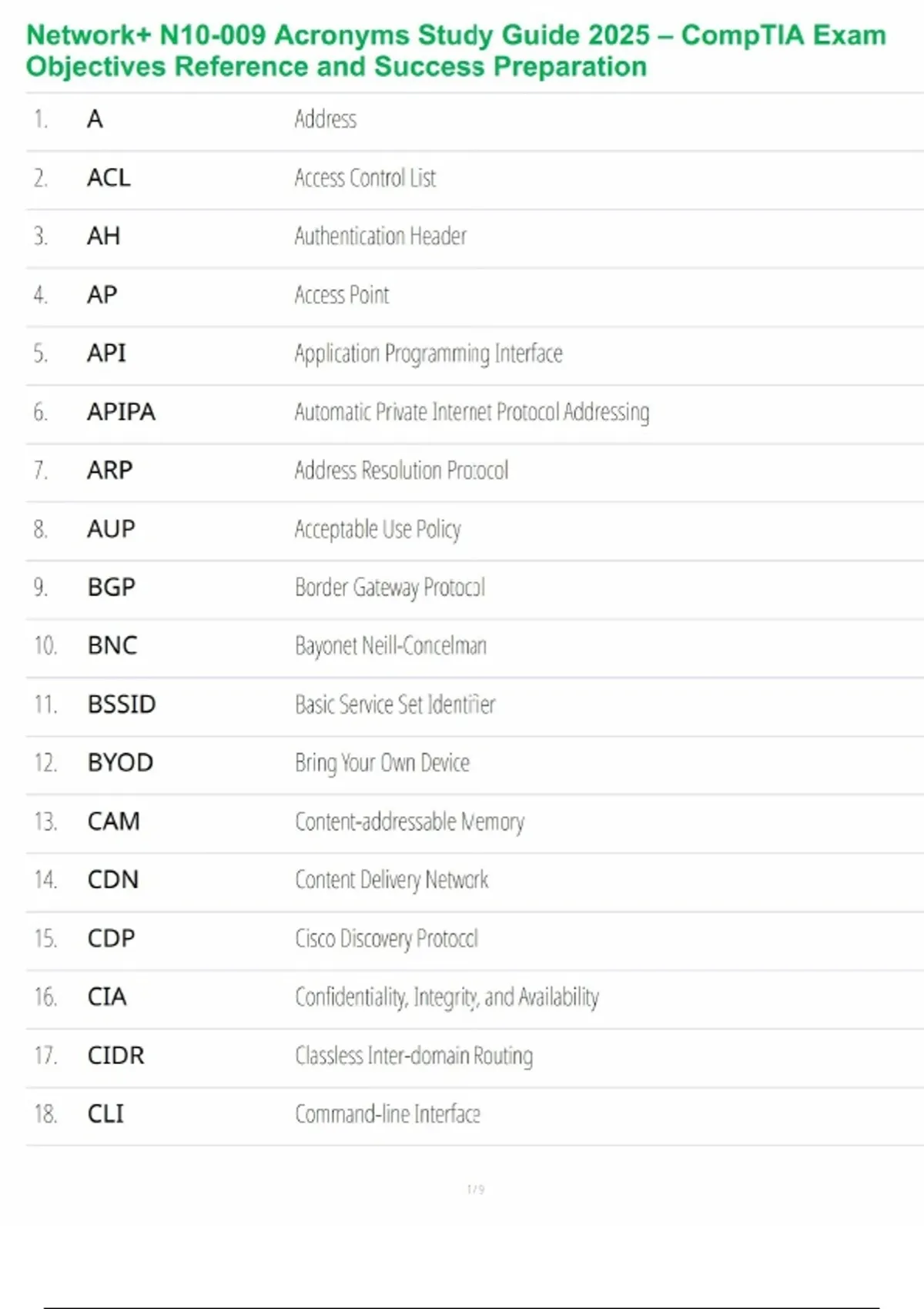 Network+ N10-009 Acronyms Study Guide 2025 – CompTIA Exam Objectives Reference and Success Preparation