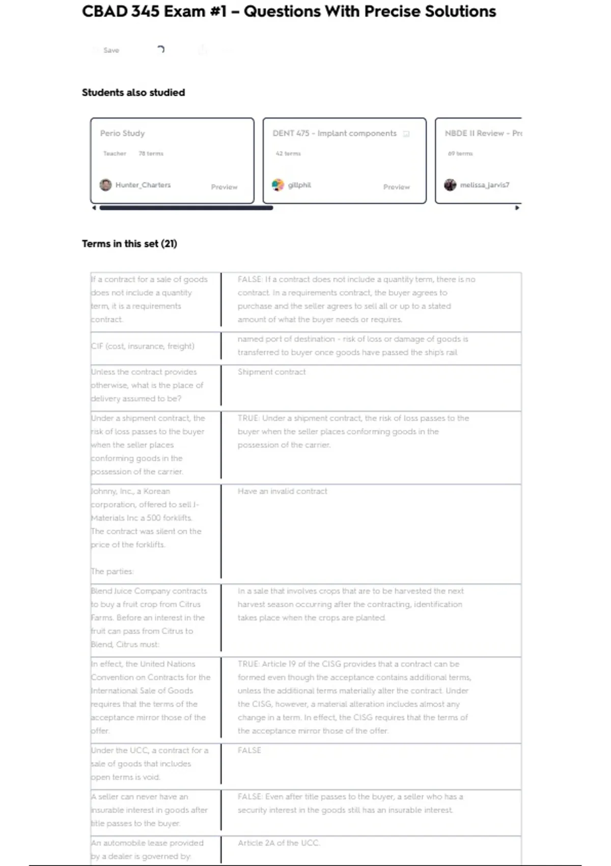 If a contract for a sale of goods FALSE: If a contract does not include a quantity term, there is no
