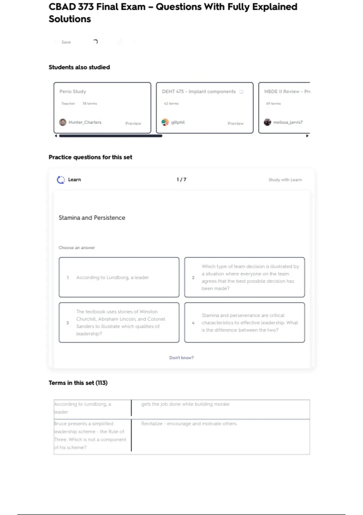 Practice questions for this set