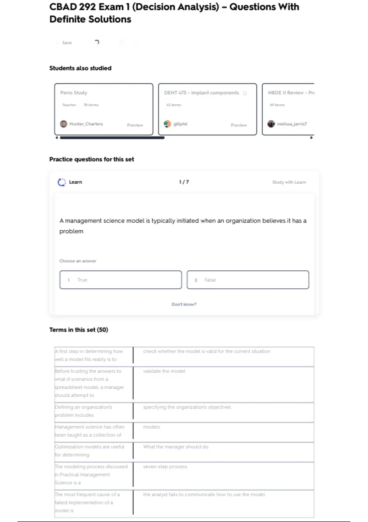 CBAD 292 Exam 1 (Decision Analysis) – Questions With