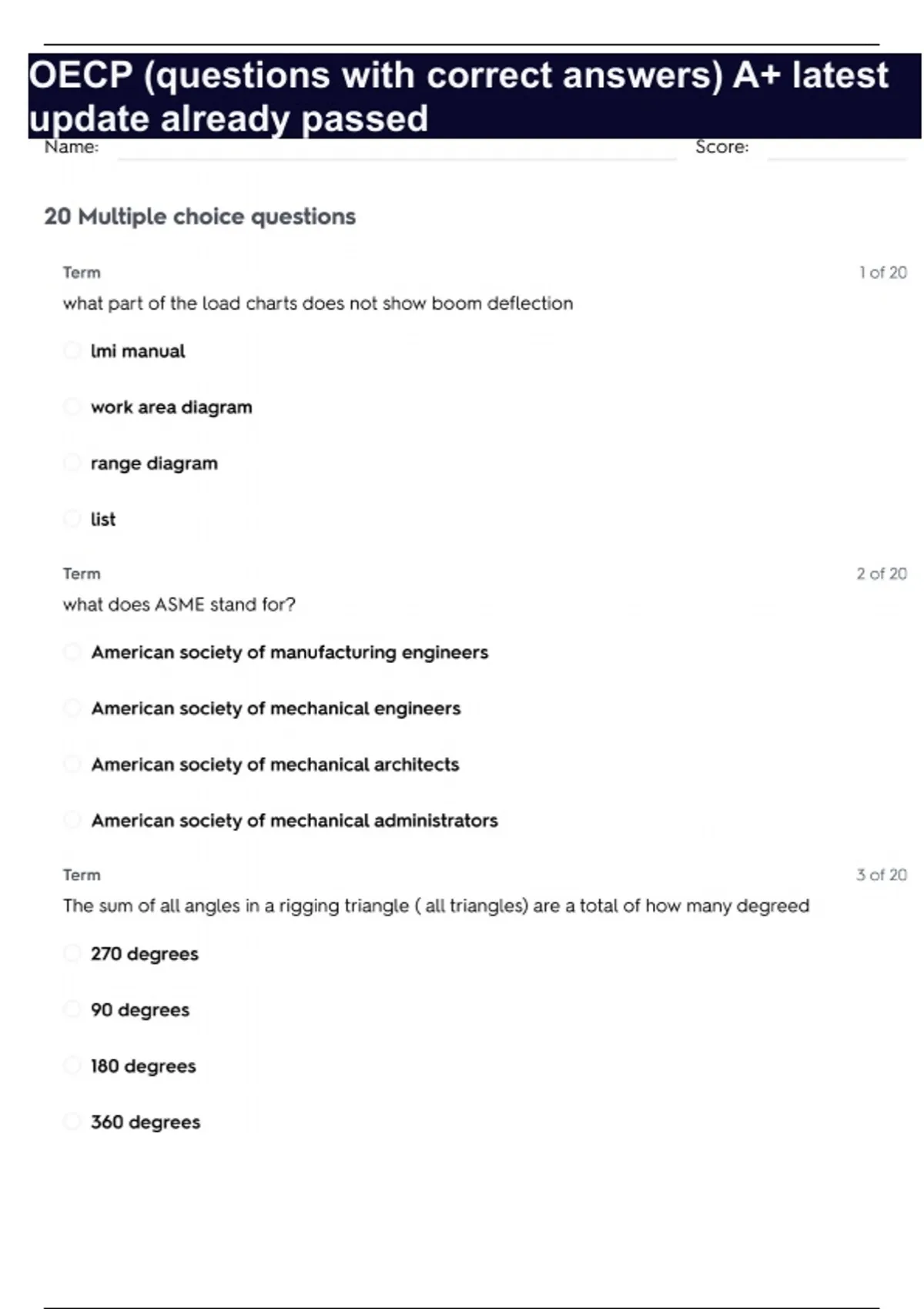 oecp questions with correct answers a latest up