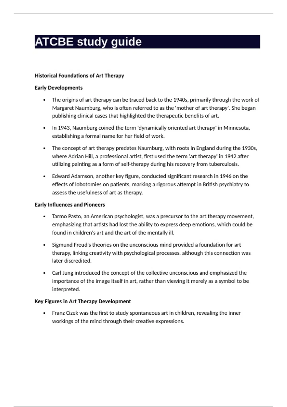 Margaret Naumburg: Defined art therapy as a distinct field in 1940, integrating Freudian