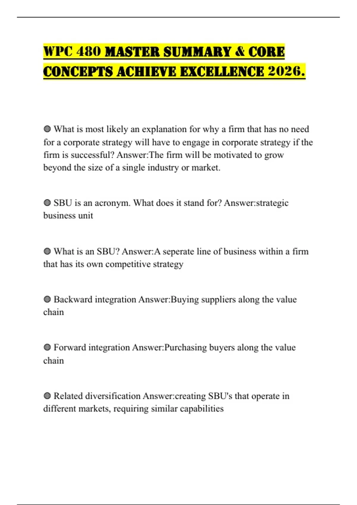 , ◍ Unrelated diversification Answer:Creating SBU's that operate in a