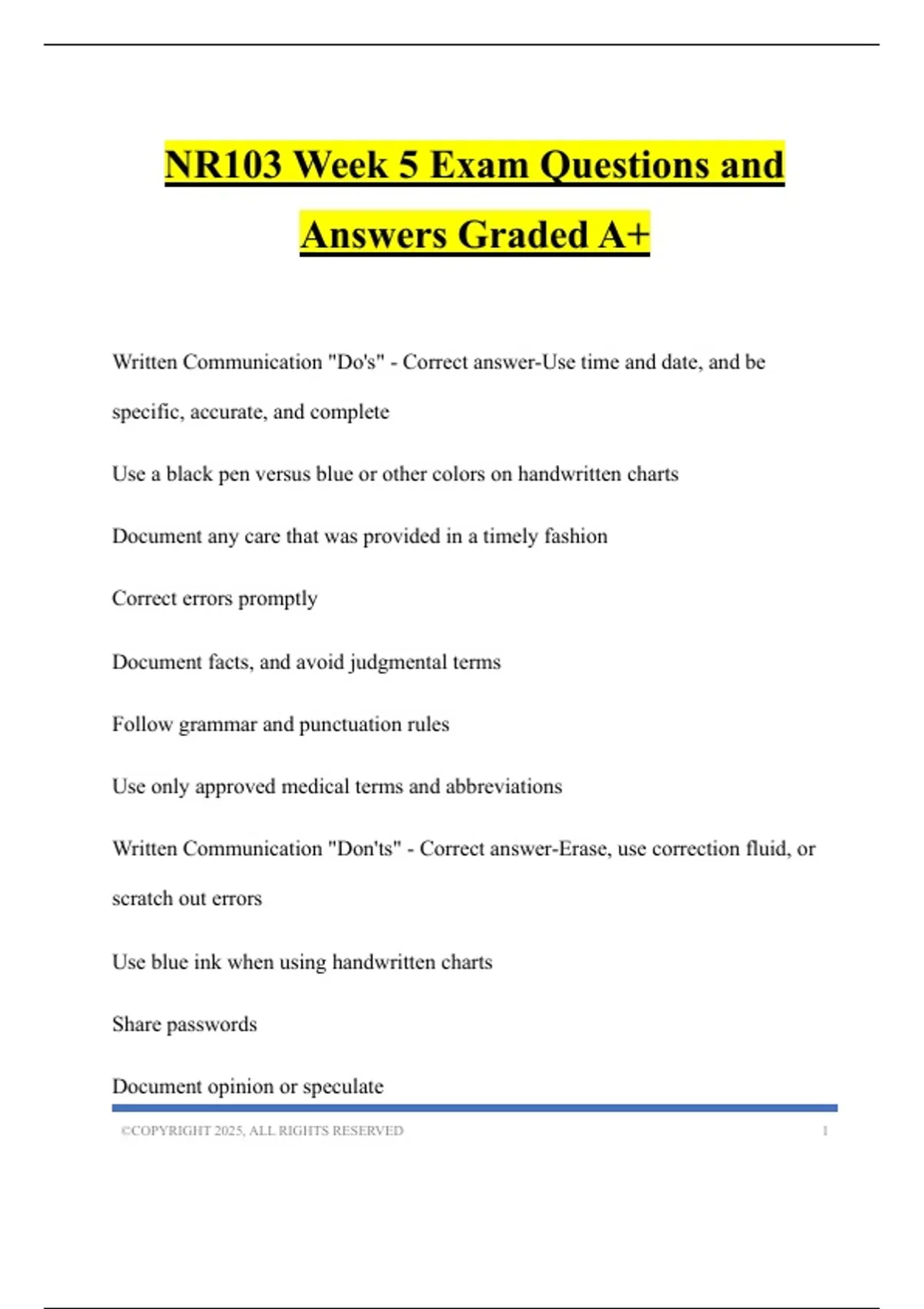 NR103 Week 5 Exam Questions and Answers Graded A+