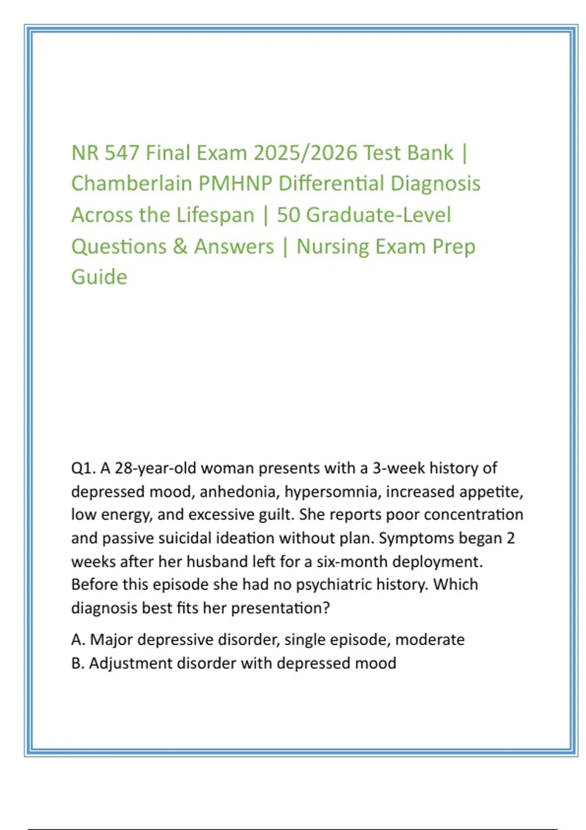 Q4. A 34-year-old male veteran reports recurrent nightmares,