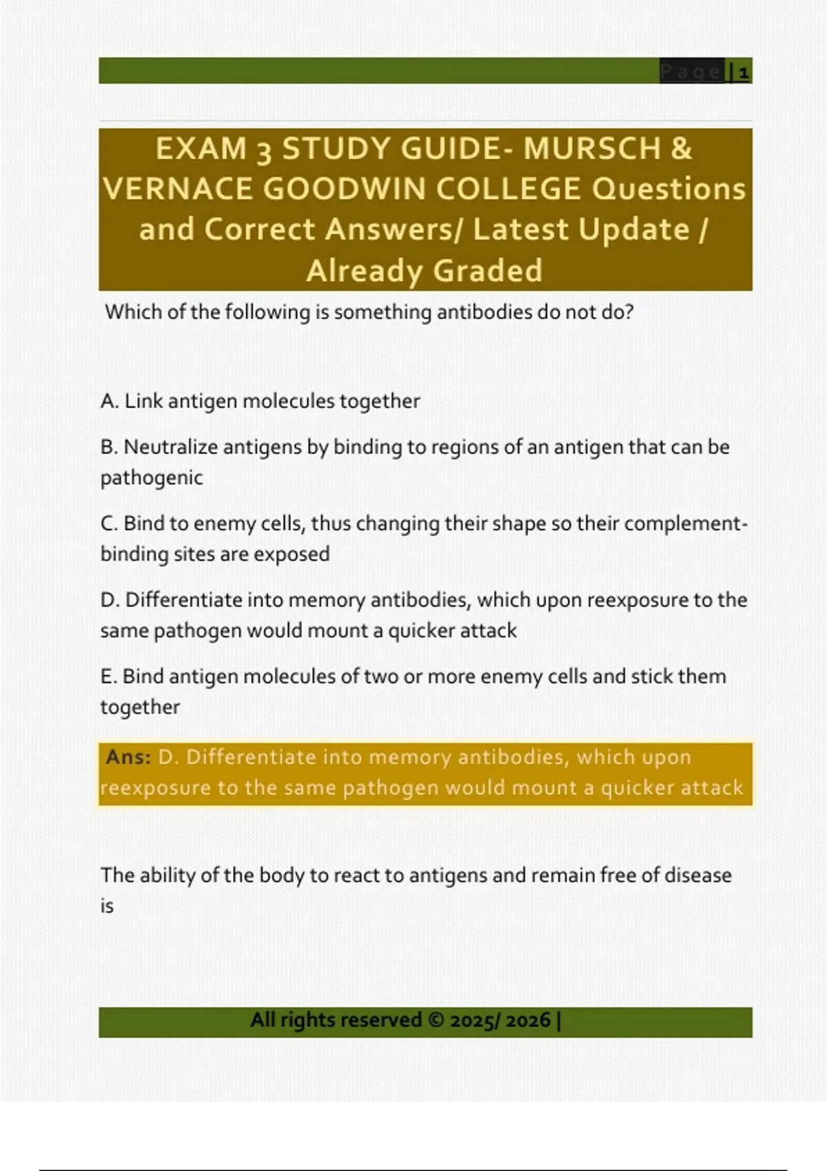 Ans: D. Differentiate into memory antibodies, which upon