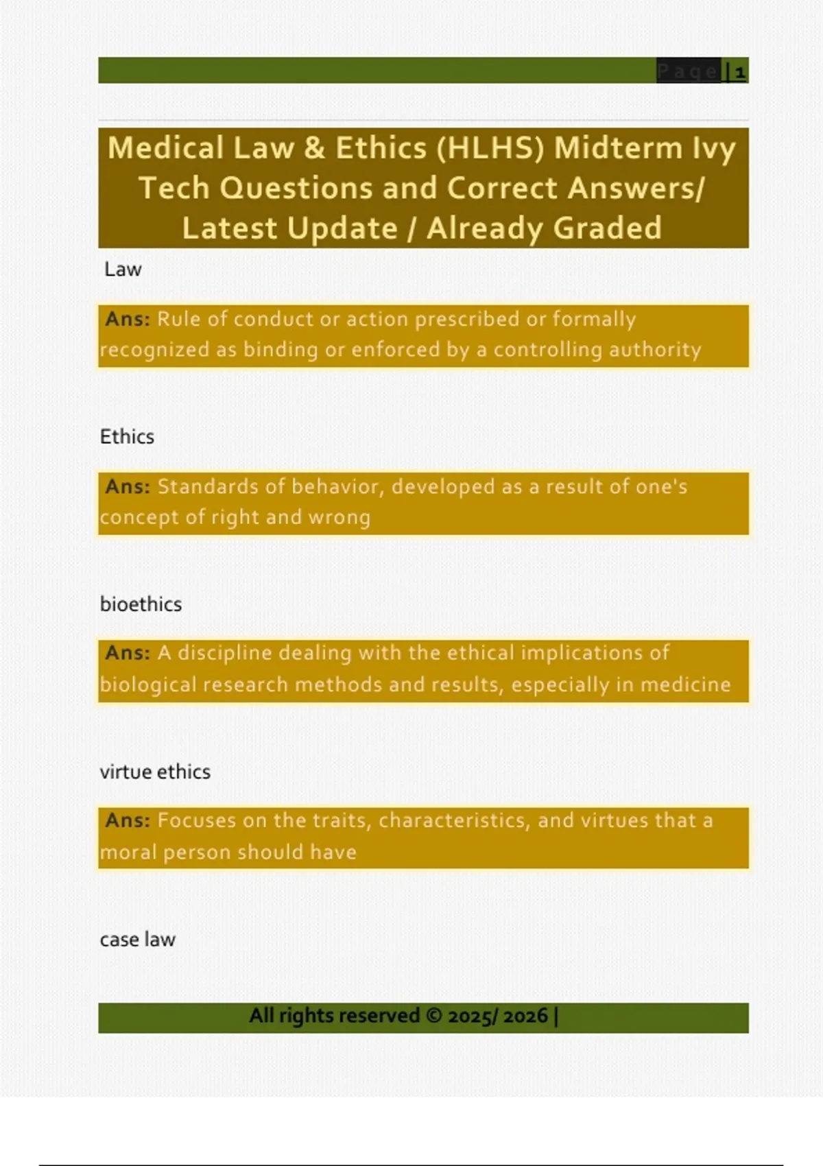 Medical Law & Ethics (HLHS) Midterm Ivy