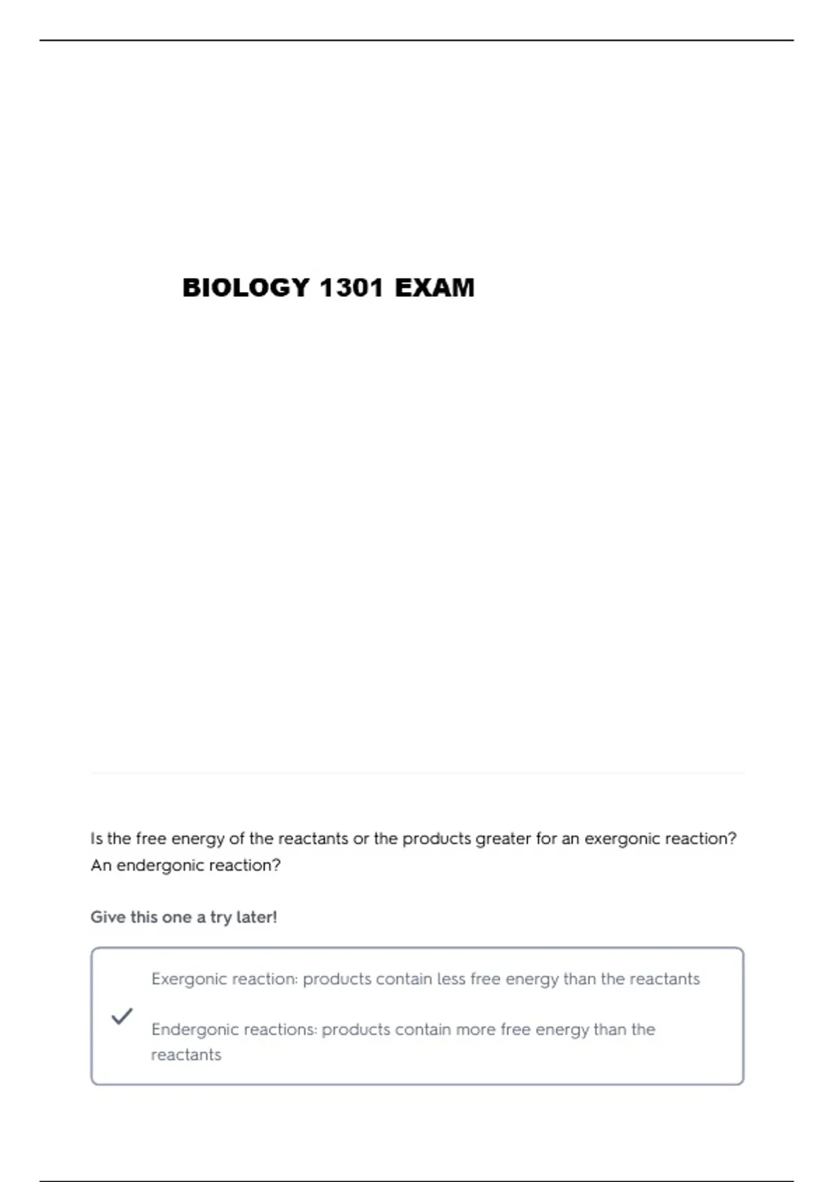 BIOLOGY 1301 MODULE 3 RAP 1 STUDY GUIDE QUESTIONS AND VERIFIED ANSWERS