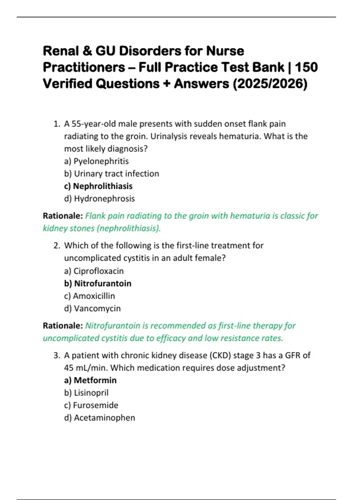 Rationale: Flank pain radiating to the groin with hematuria is classic for