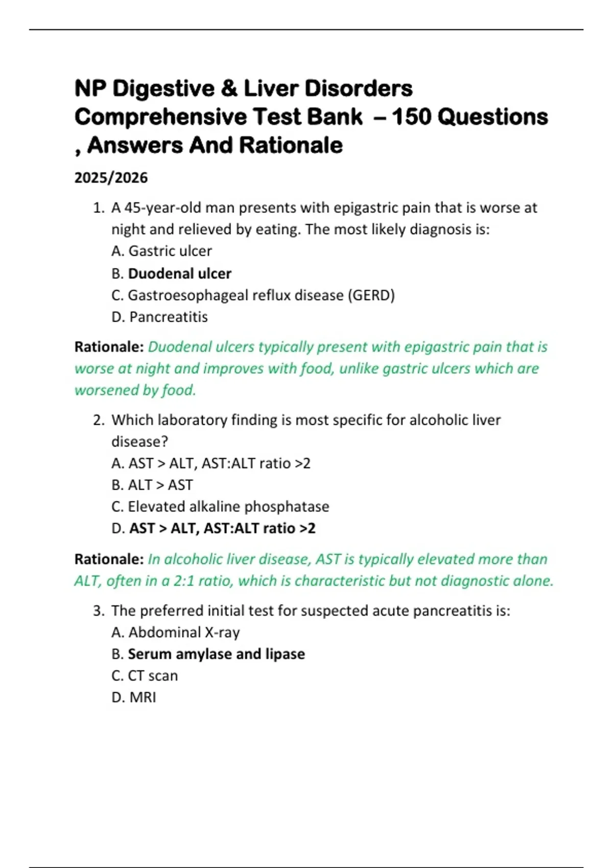 NP Digestive & Liver Disorders Comprehensive Test Bank – 150 Questions , Answers And Rationale 2025/2026