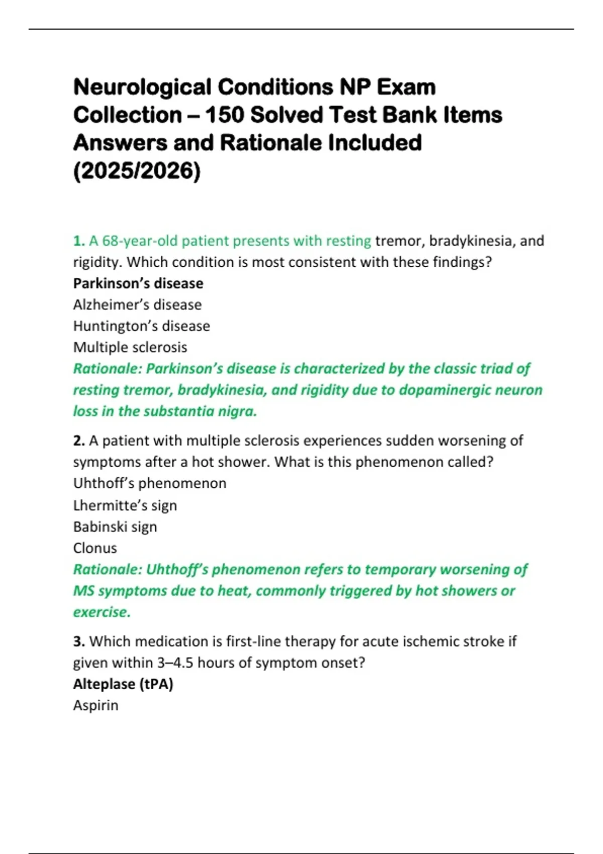 Neurological Conditions NP Exam Collection – 150 Solved Test Bank Items Answers and Rationale Included (2025/2026)