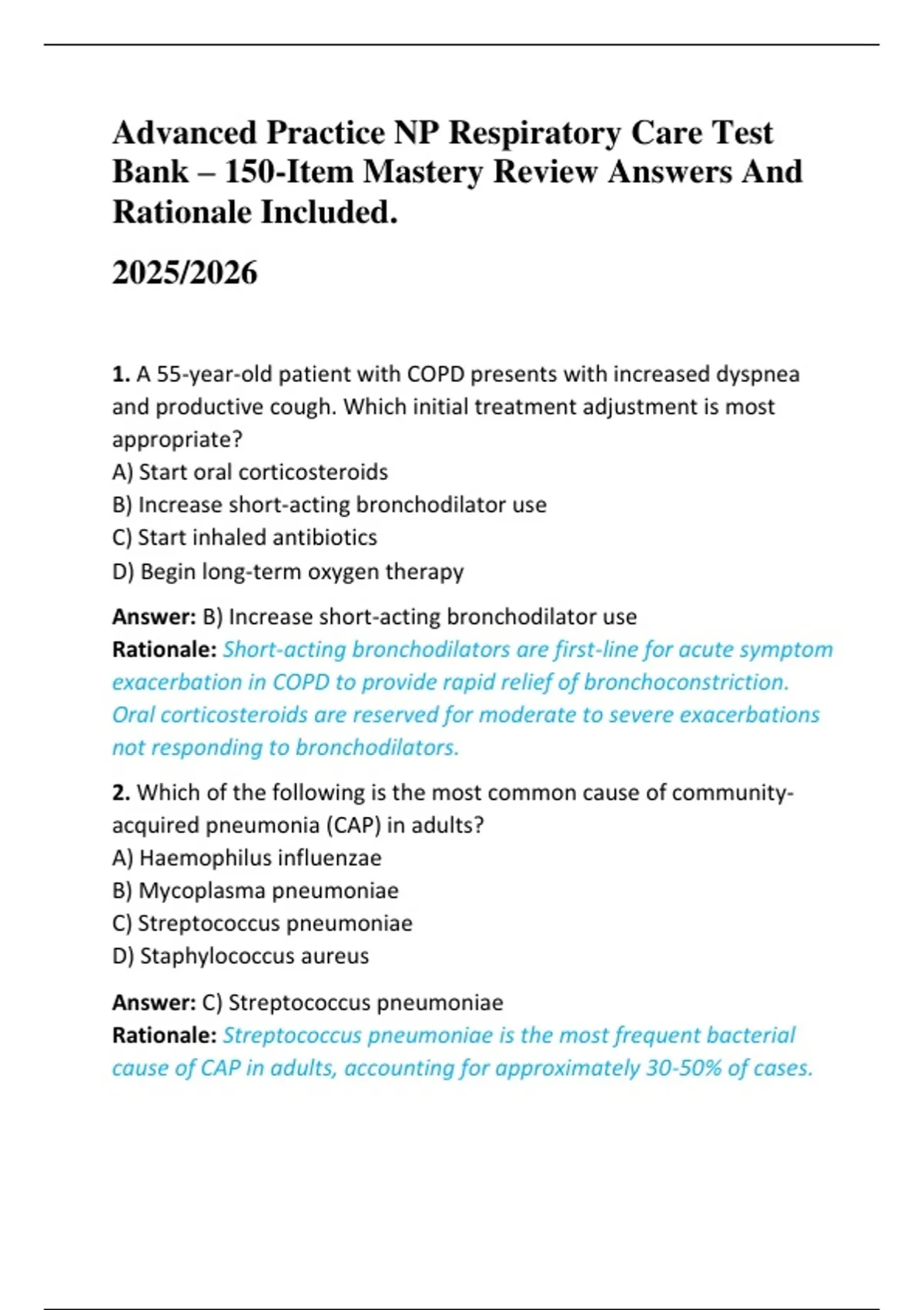 Bank – 150-Item Mastery Review Answers And