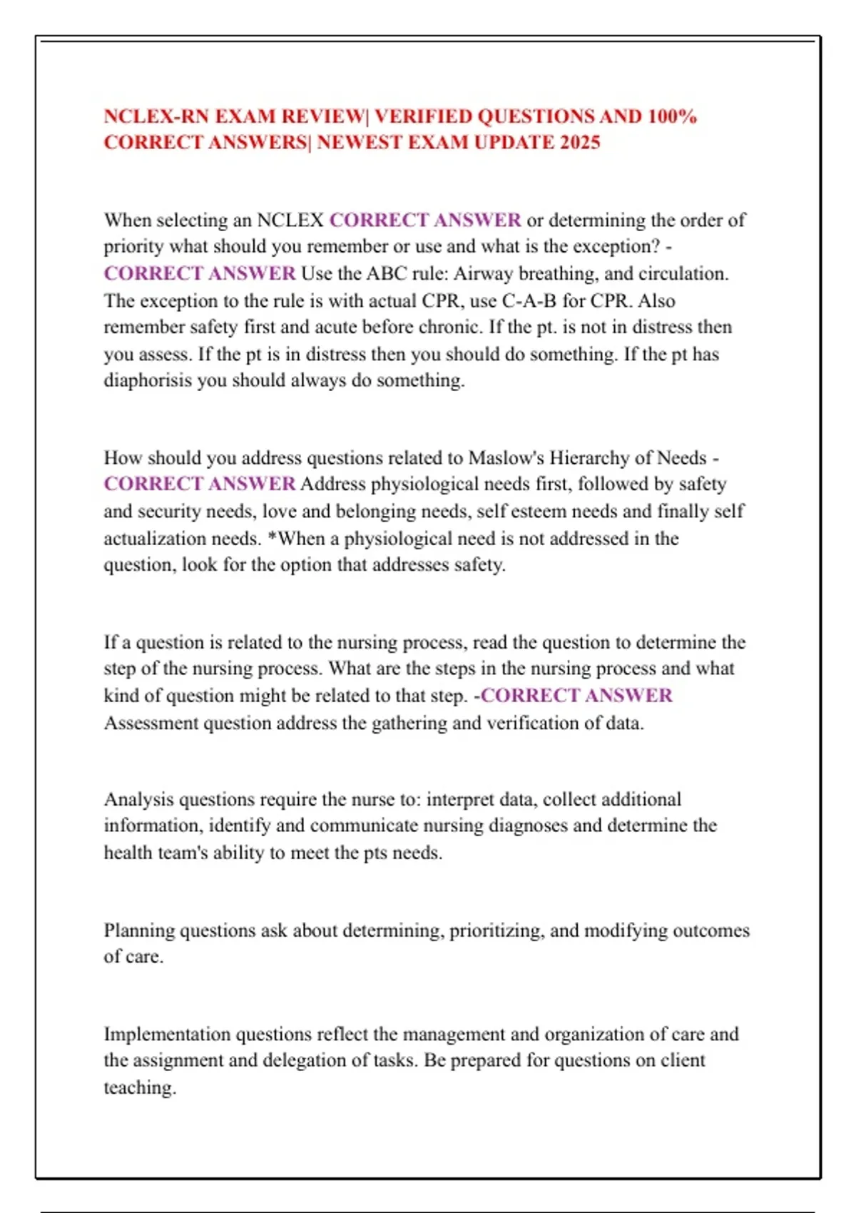 NCLEX-RN EXAM REVIEW| VERIFIED QUESTIONS AND 100%