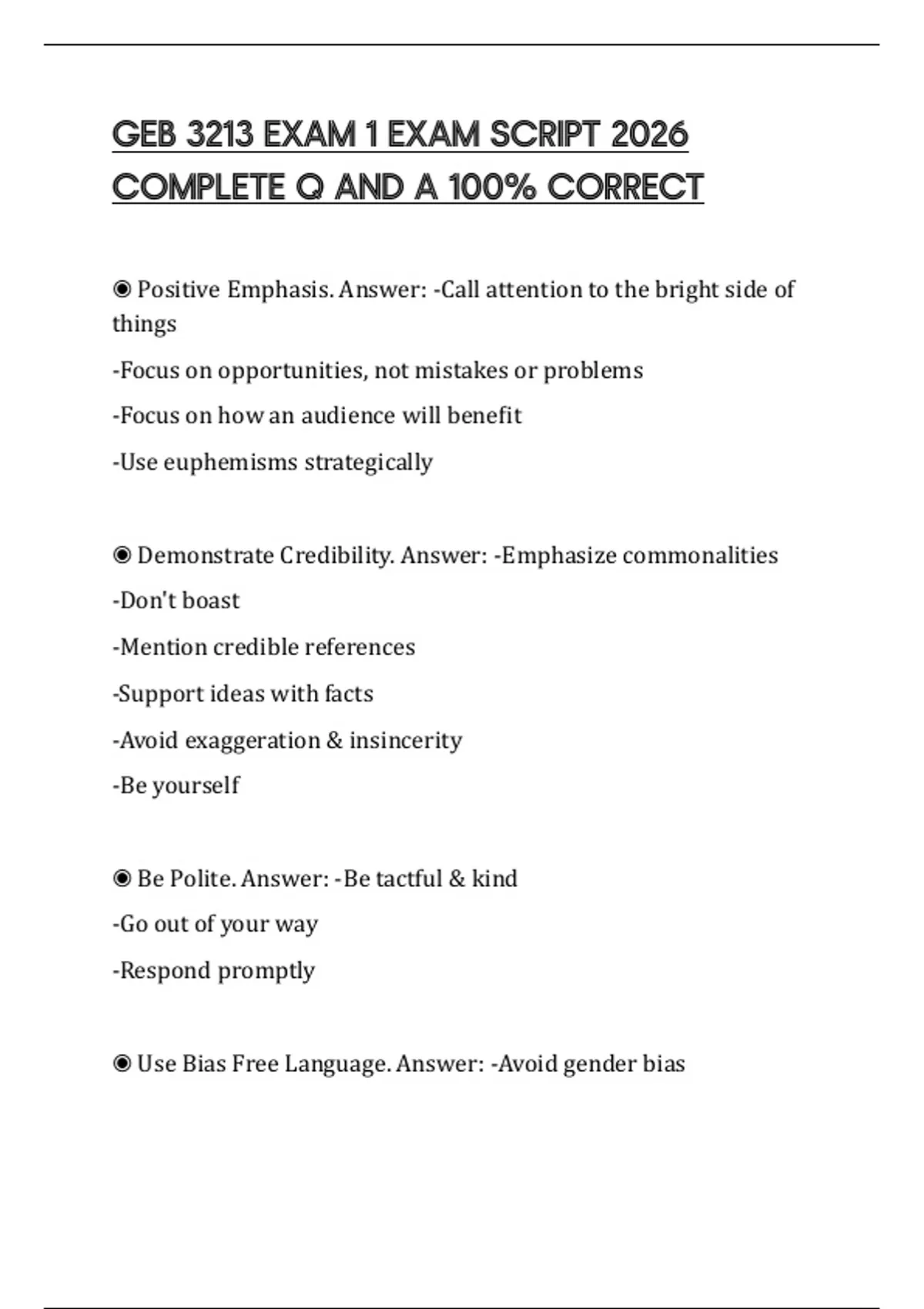◉ Use Bias Free Language. Answer: -Avoid gender bias
