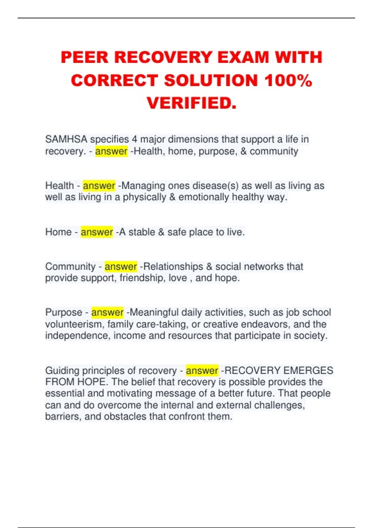 , Guiding Principles of recovery - answer -RECOVERY IS