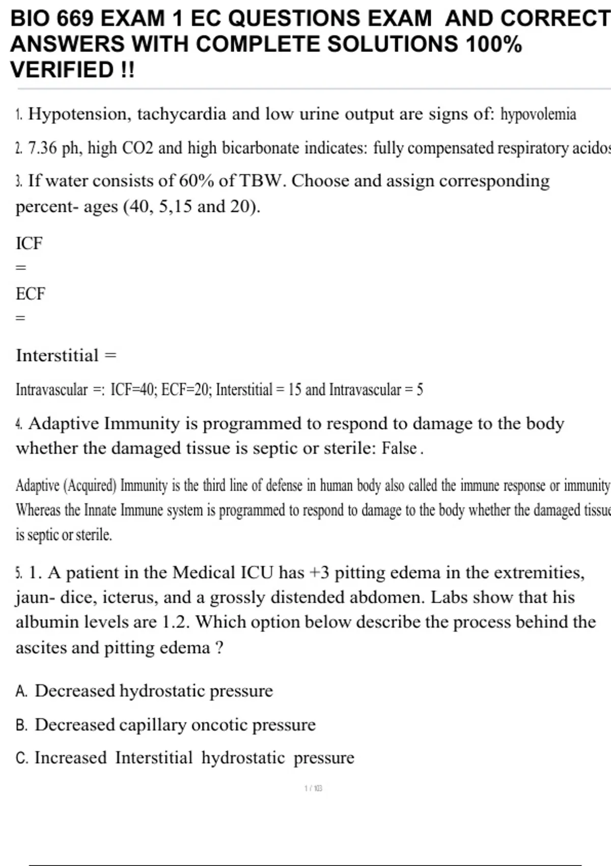 BIO 669 EXAM 1 EC QUESTIONS EXAM AND CORRECT