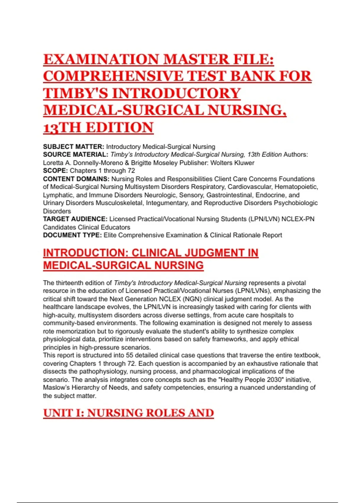 TARGET AUDIENCE: Licensed Practical/Vocational Nursing Students (LPN/LVN) NCLEX-PN