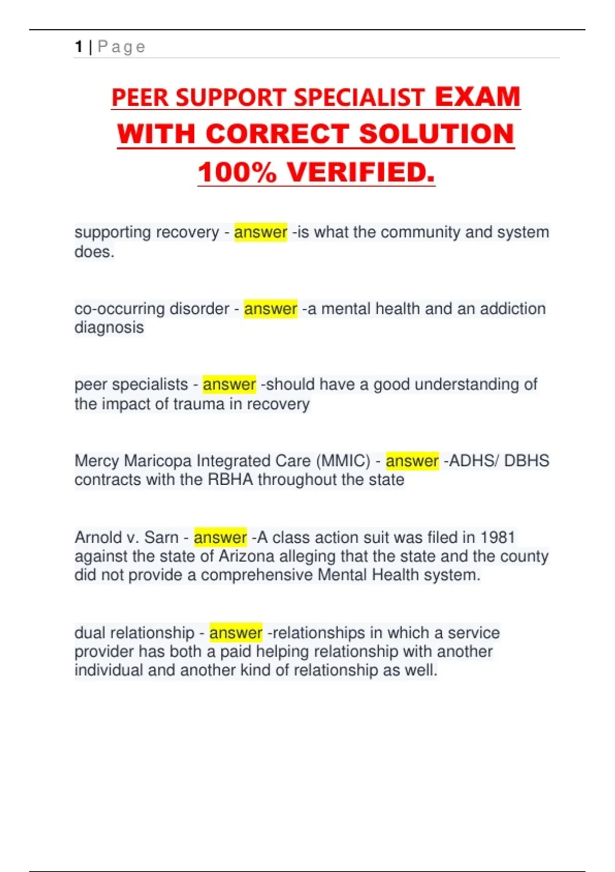 PEER SUPPORT SPECIALIST EXAM
