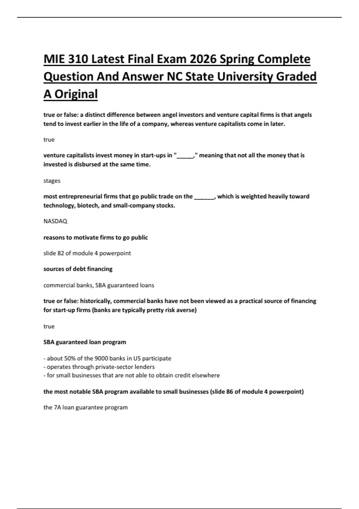 MIE 310 Latest Final Exam 2026 Spring Complete