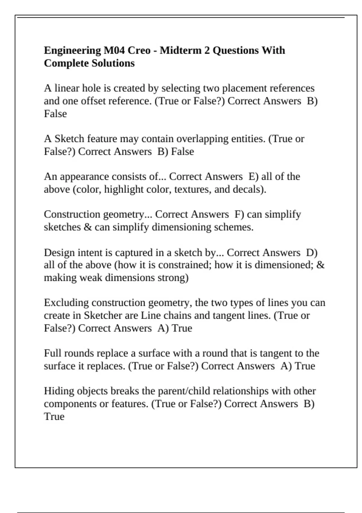 between existing geometry. Correct Answers A) True