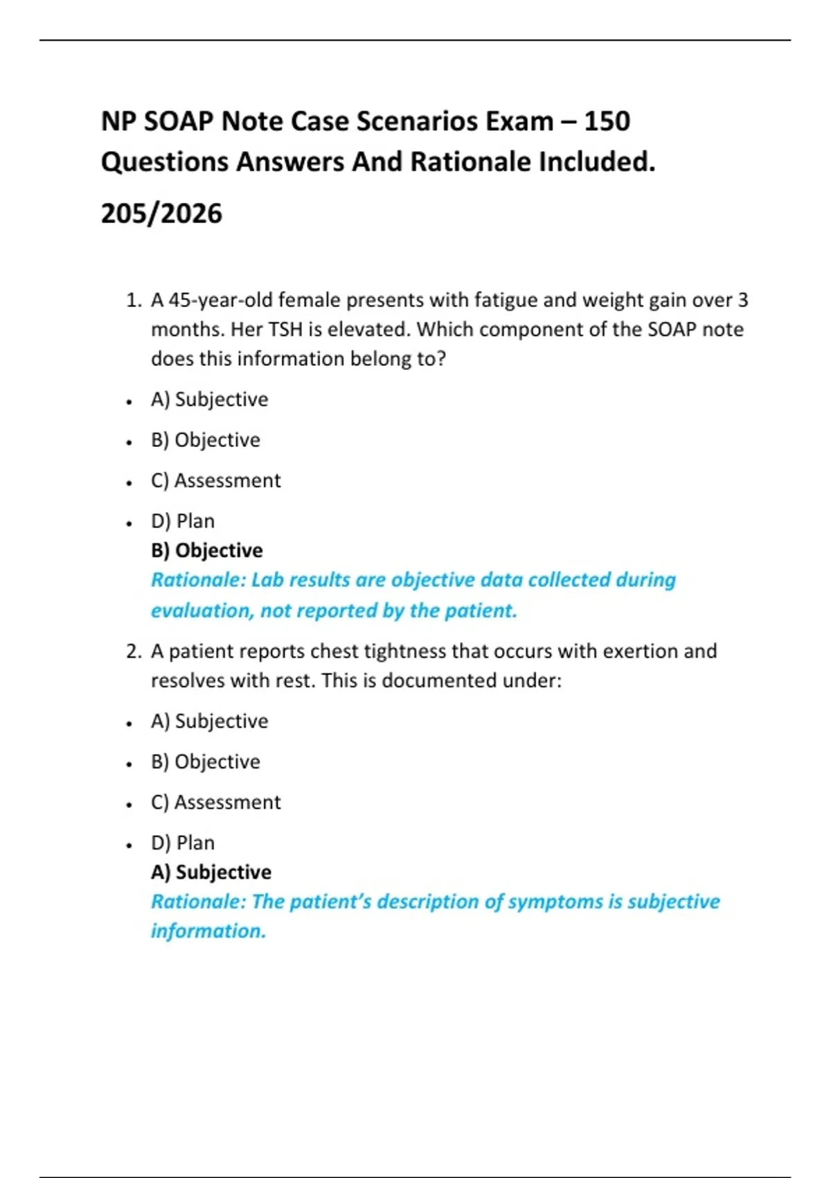 NP SOAP Note Case Scenarios Exam – 150 Questions Answers And Rationale Included. 205/2026