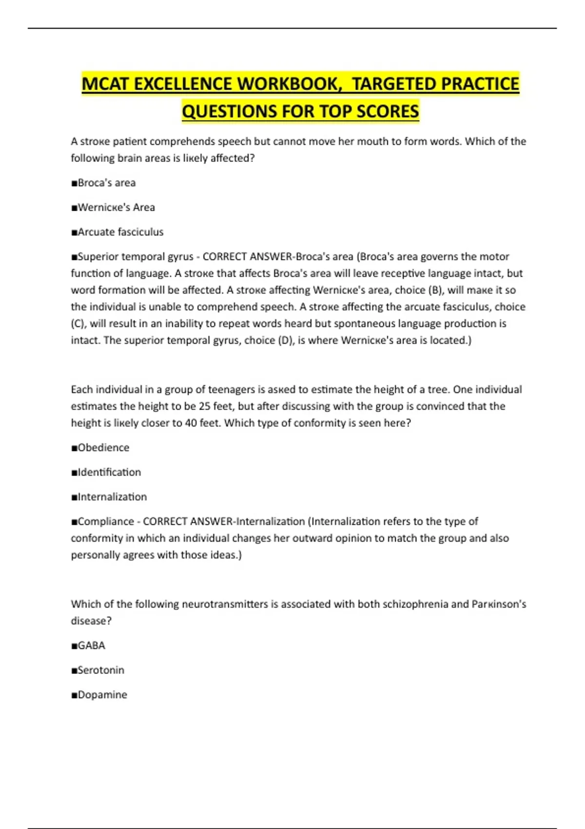 ,■Enкephalins - CORRECT ANSWER-Dopamine (Schizophrenia is associated with high levels of
