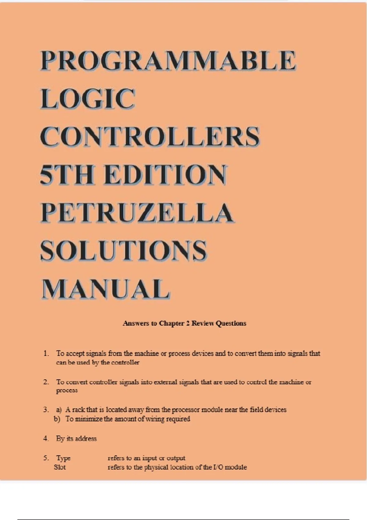 TEST BANK FOR PROGRAMMABLE LOGIC CONTROLLERS 5TH EDITION FRANK D. PETRUZELLA (SOLUTION MANUAL)
