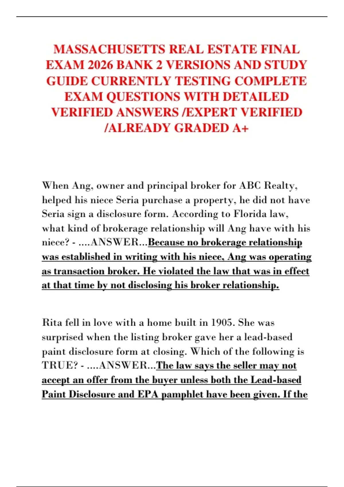 paint disclosure form at closing. Which of the following is