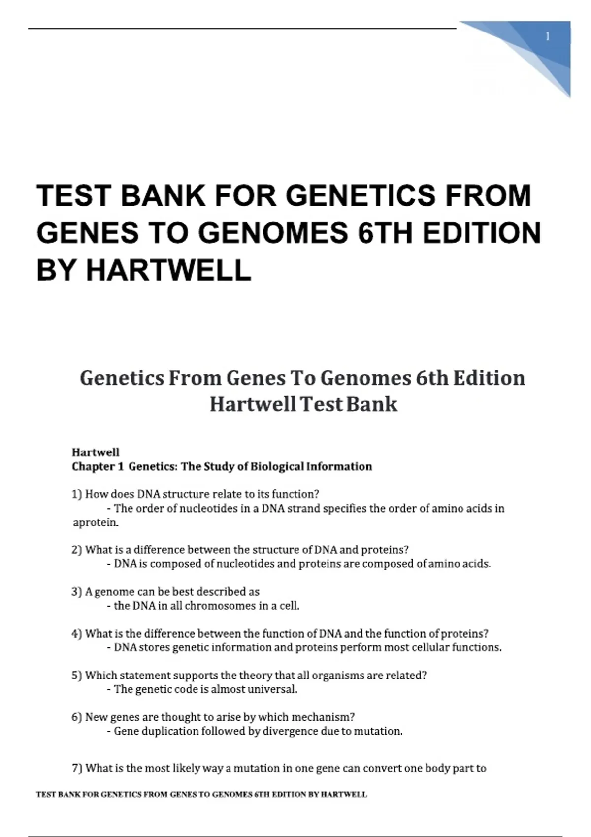 TEST BANK FOR GENETICS FROM GENES TO GENOMES 6TH EDITION BY HARTWELL