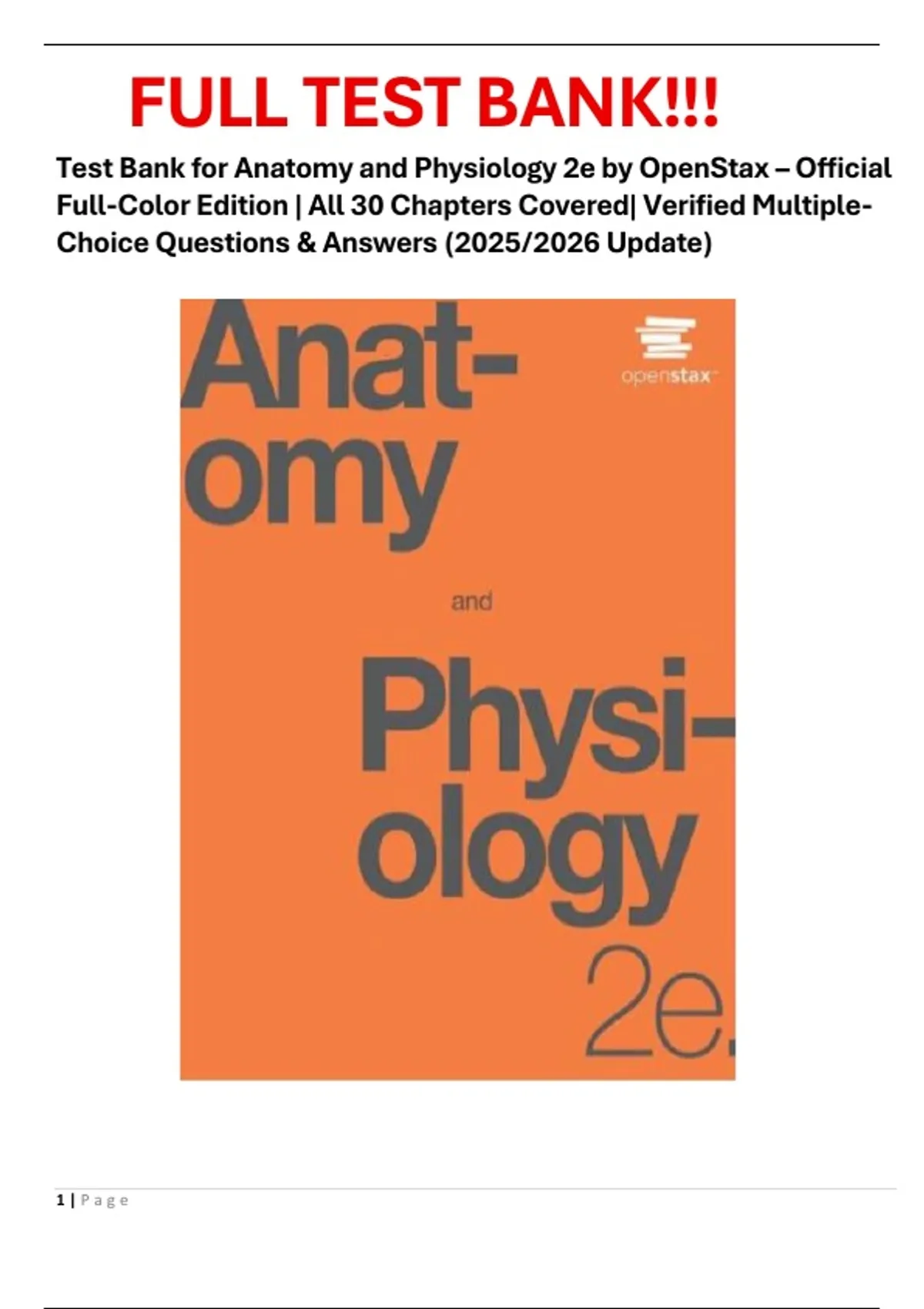 Test Bank for Anatomy and Physiology 2e by OpenStax – Official