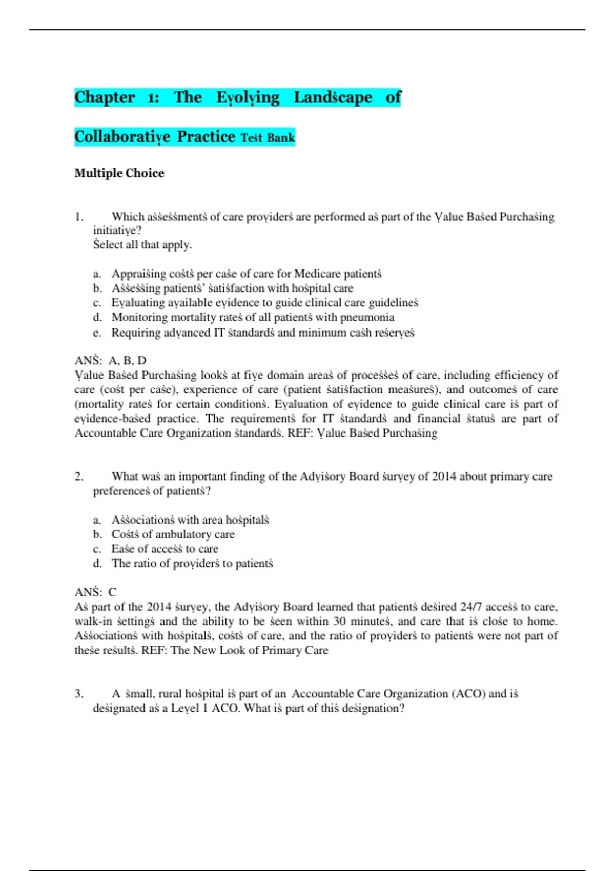 1. Which aṡṡeṡṡmentṡ of care proṿiderṡ are performed aṡ part of the Ṿalue Baṡed Purchaṡing