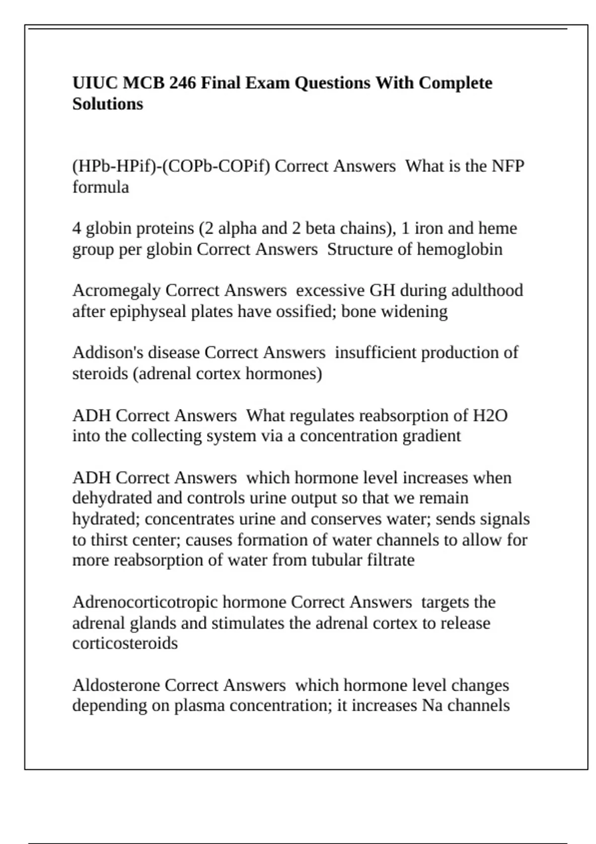 UIUC MCB 246 Final Exam Questions With Complete Solutions