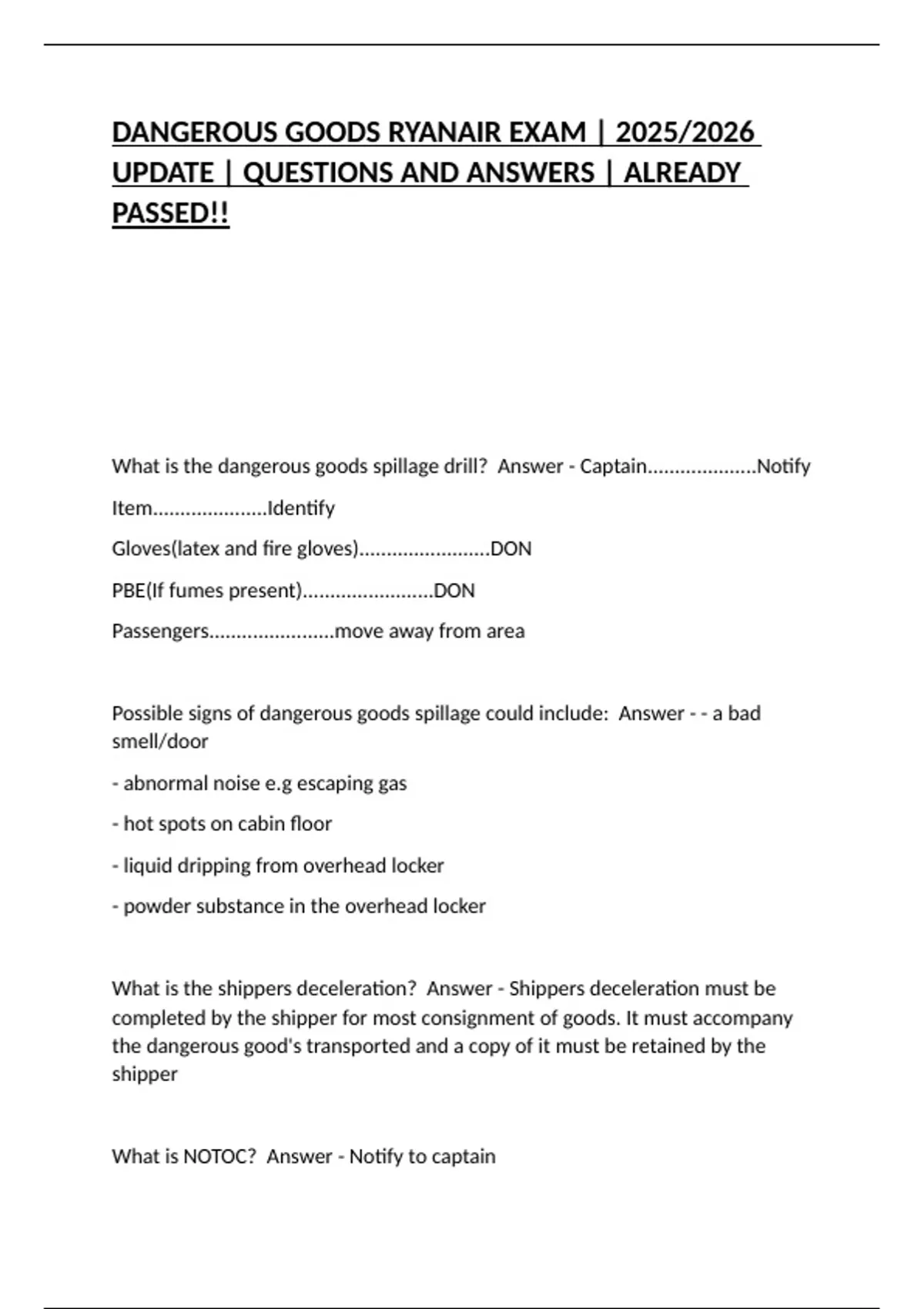 What is the dangerous goods spillage drill? Answer - Captain....................Notify