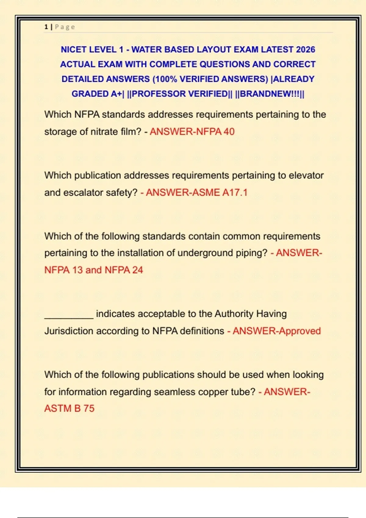 NICET LEVEL 1 - WATER BASED LAYOUT EXAM LATEST 2026