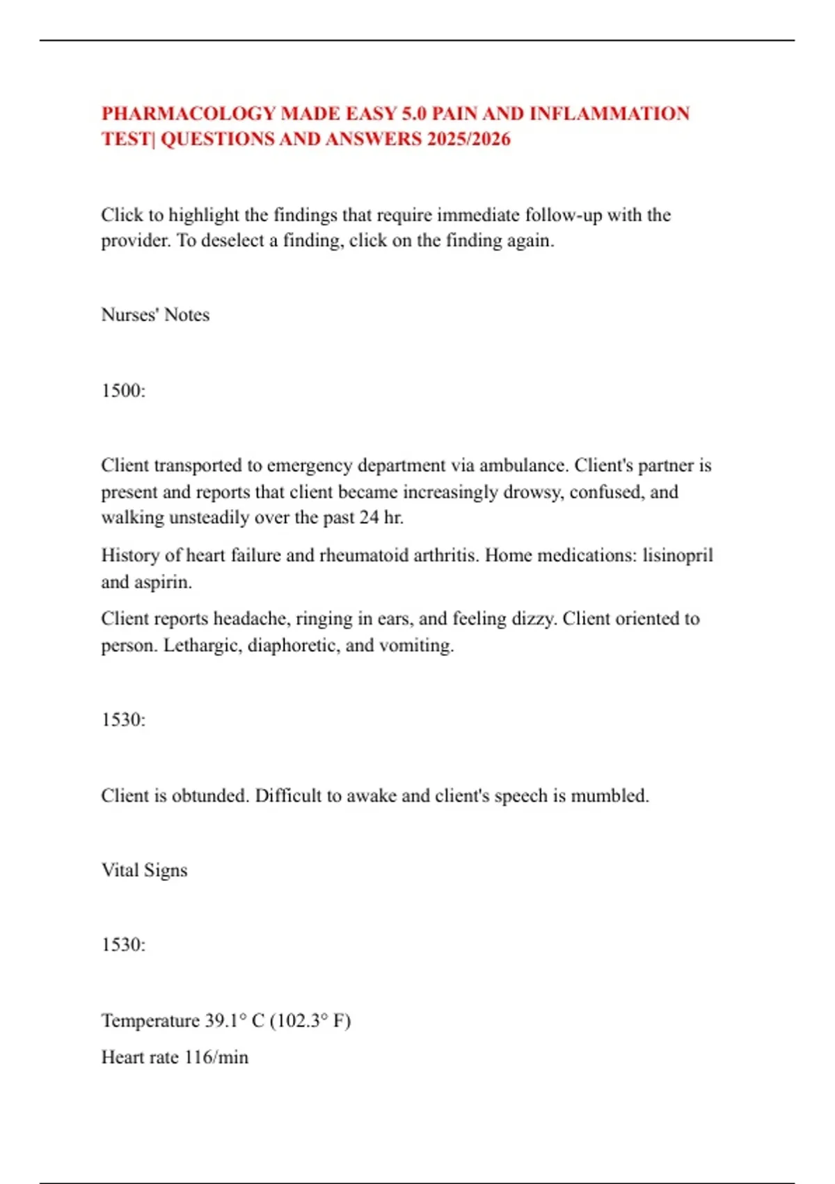 PHARMACOLOGY MADE EASY 5.0 PAIN AND INFLAMMATION TEST| QUESTIONS AND ANSWERS 2025/2026