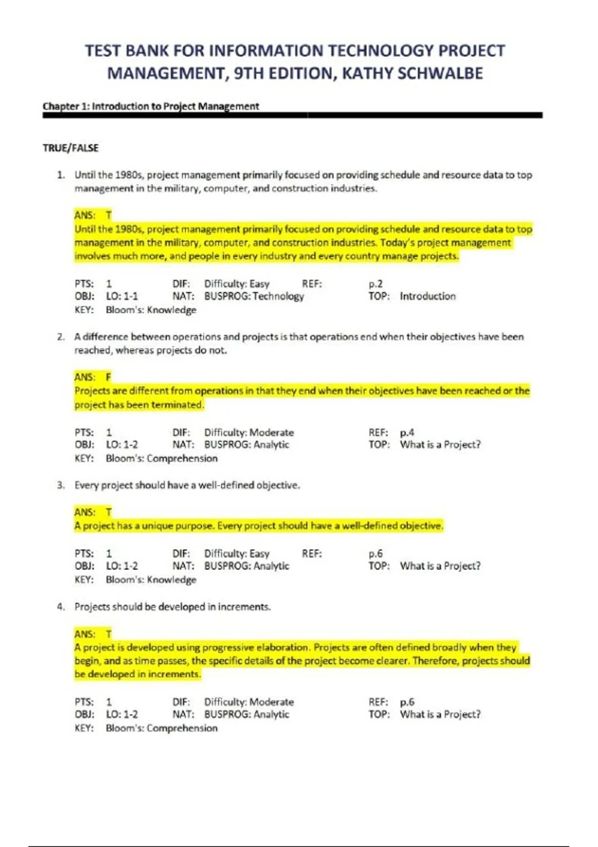 ITM750 TEST BANK FOR INFORMATION TECHNOLOGY PROJECT MANAGEMENT, 9TH EDITION, KATHY SCHWALBE EXAM QUESTIONS AND ANSWERS GRADED A+.pdf