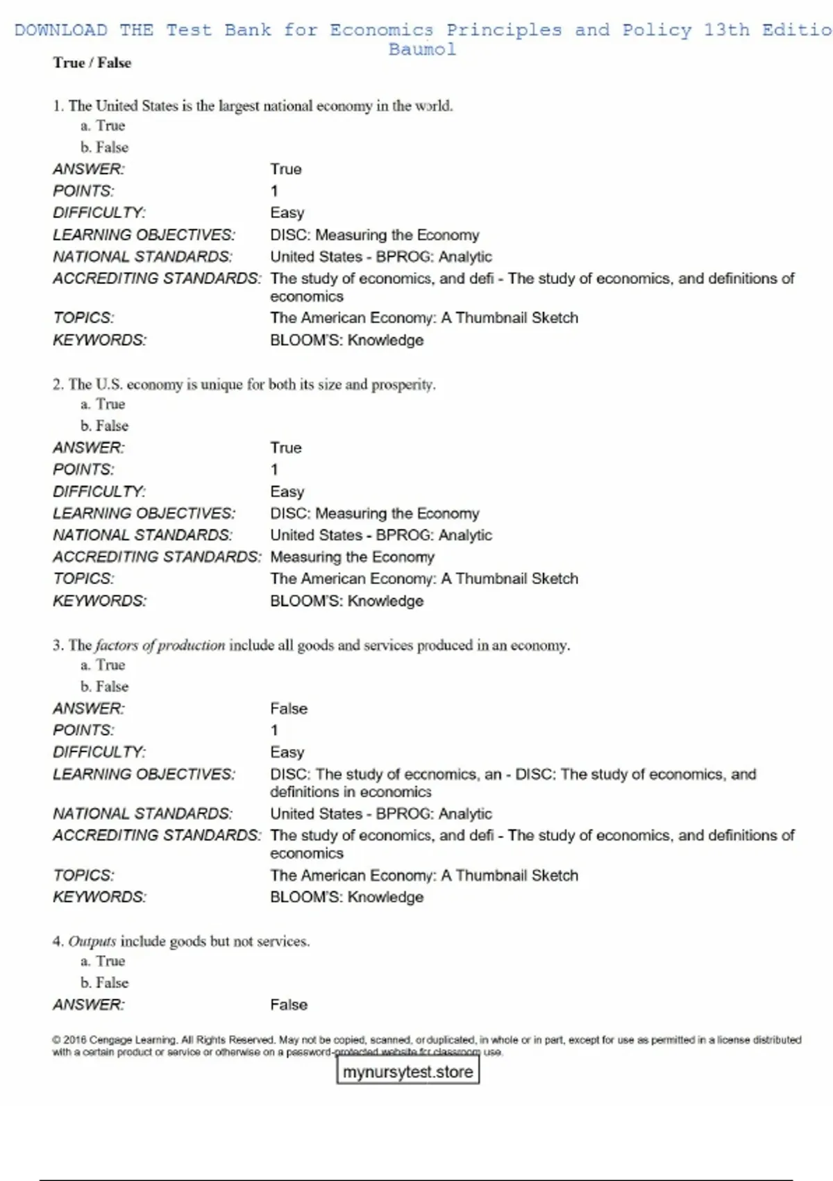 Test Bank for Economics Principles and Policy 13th Edition BAUMOL Review Questions & AnswersTest Bank for Economics Principles and Policy 13th Edition BAUMOL Review Questions & A