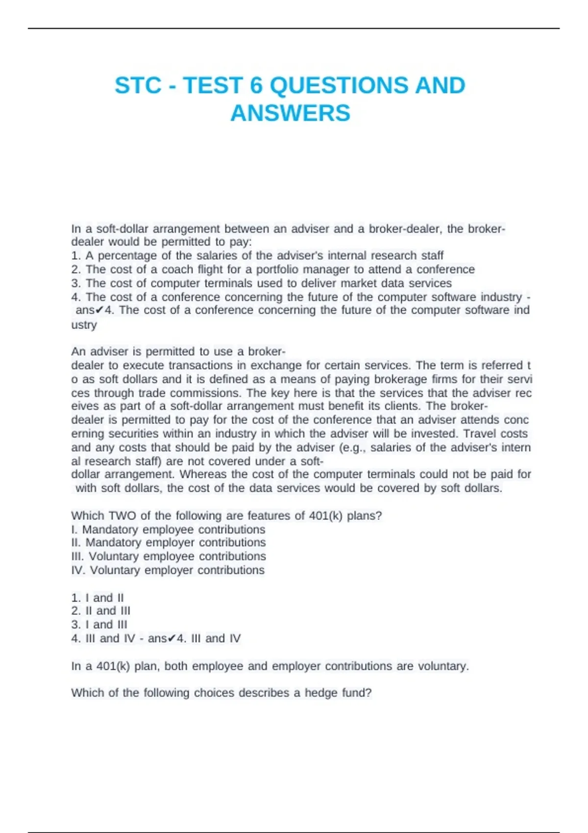 STC - TEST 6 QUESTIONS AND ANSWERS