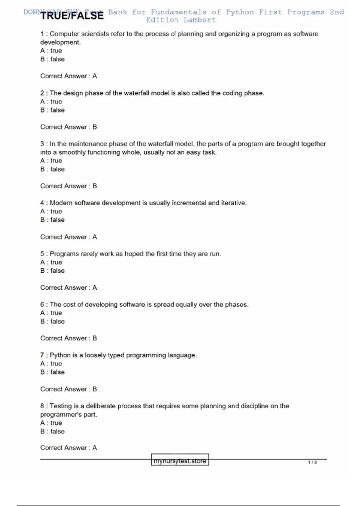 Test Bank for Information Technology Project Management 8th Edition Kathy SCHWALBE 202 Review Questions & Answers.pdf