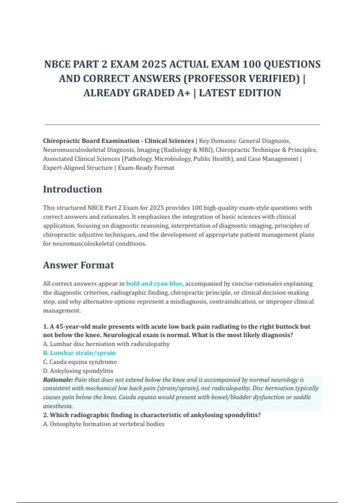 This structured NBCE Part 2 Exam for 2025 provides 100 high-quality exam-style questions with