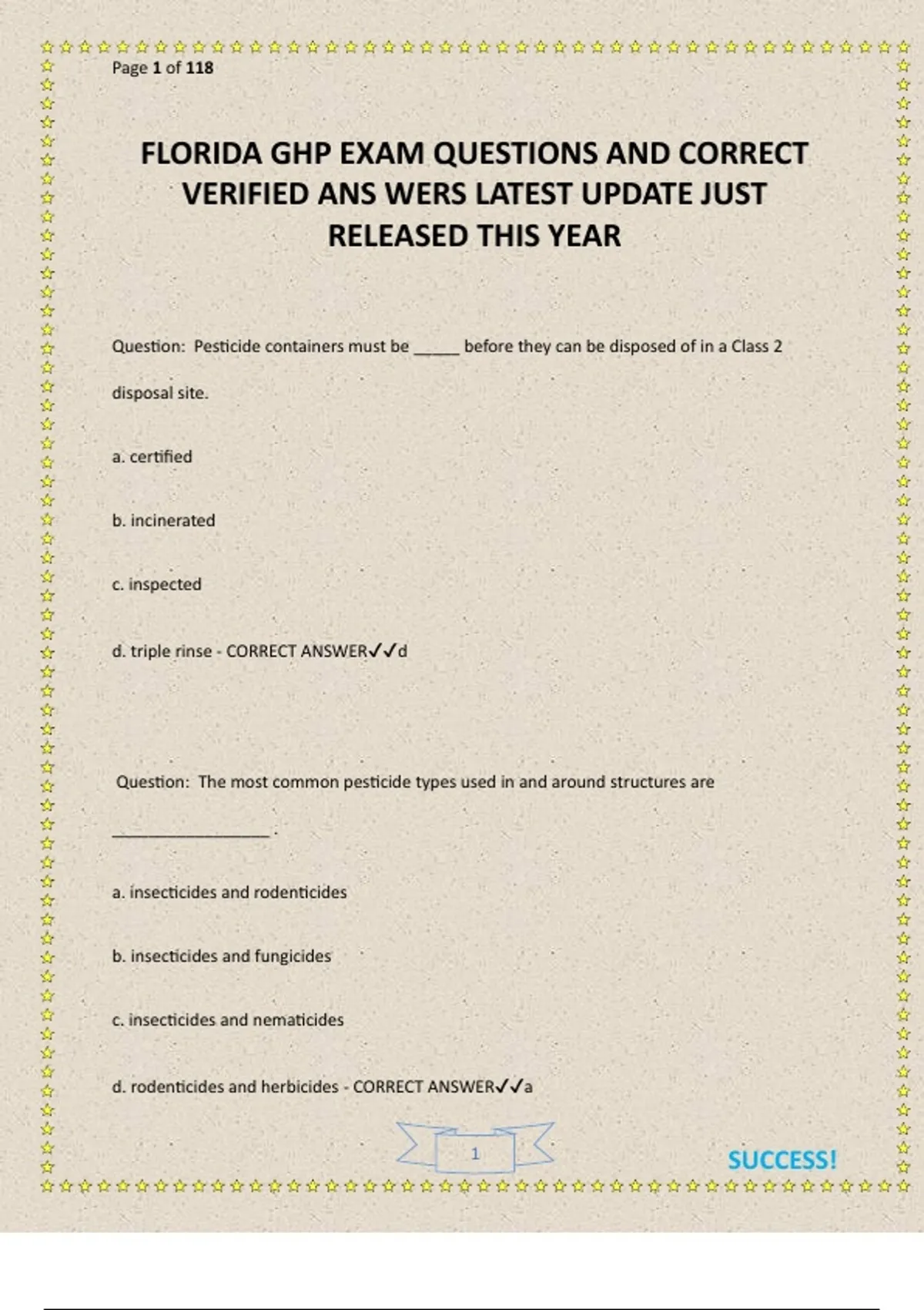 d. triple rinse - CORRECT ANSWER✔✔d