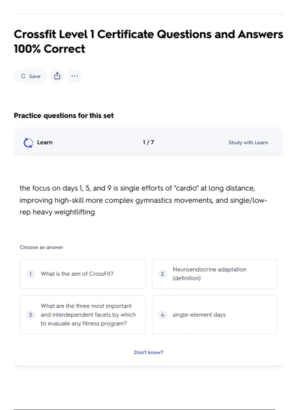 Crossfit Level 1 Certificate Questions and Answers