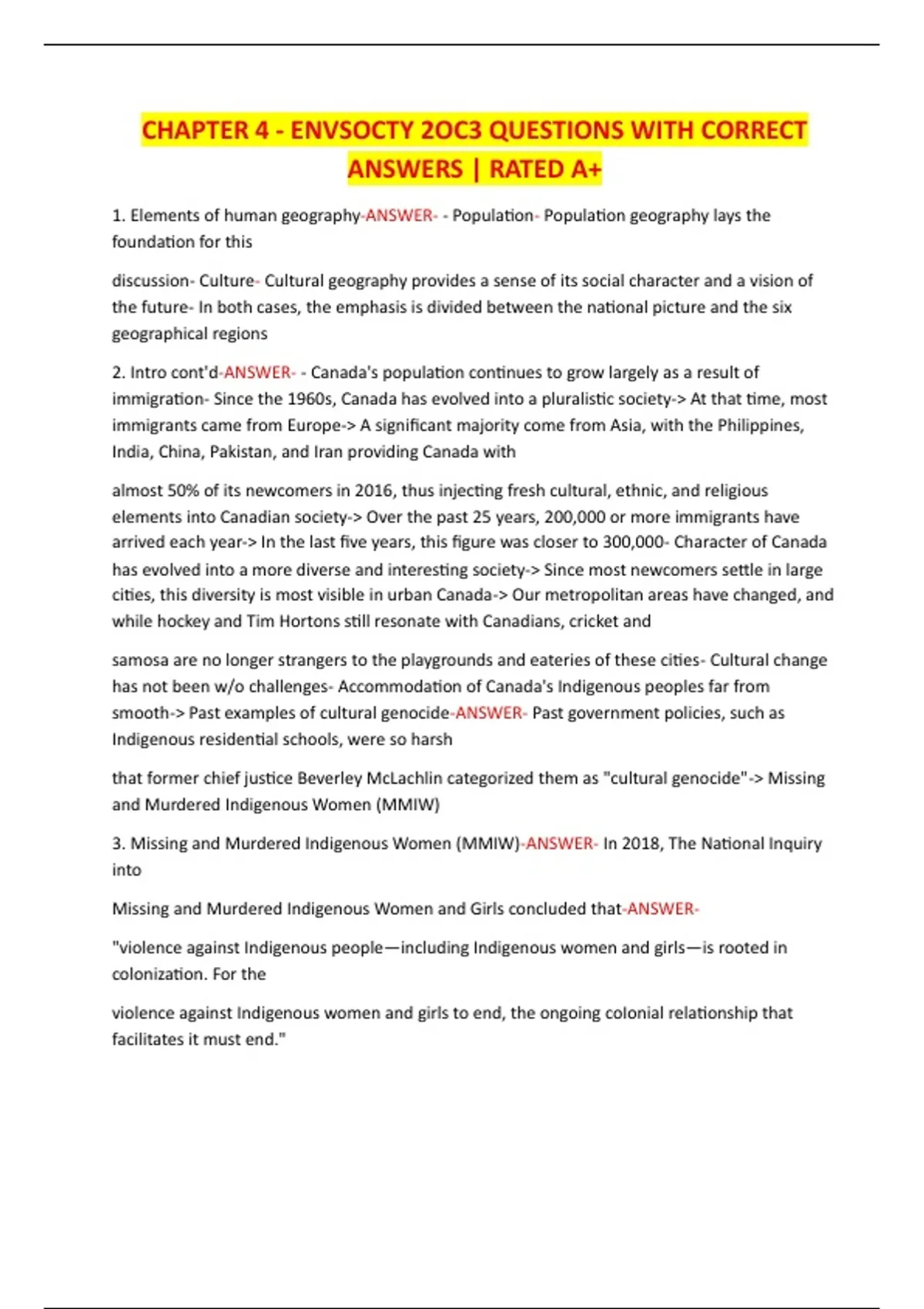 CHAPTER 4 - ENVSOCTY 2OC3 QUESTIONS WITH CORRECT ANSWERS | RATED A+