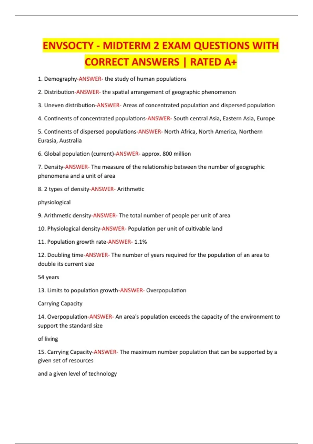 ENVSOCTY - MIDTERM 2 EXAM QUESTIONS WITH CORRECT ANSWERS | RATED A+