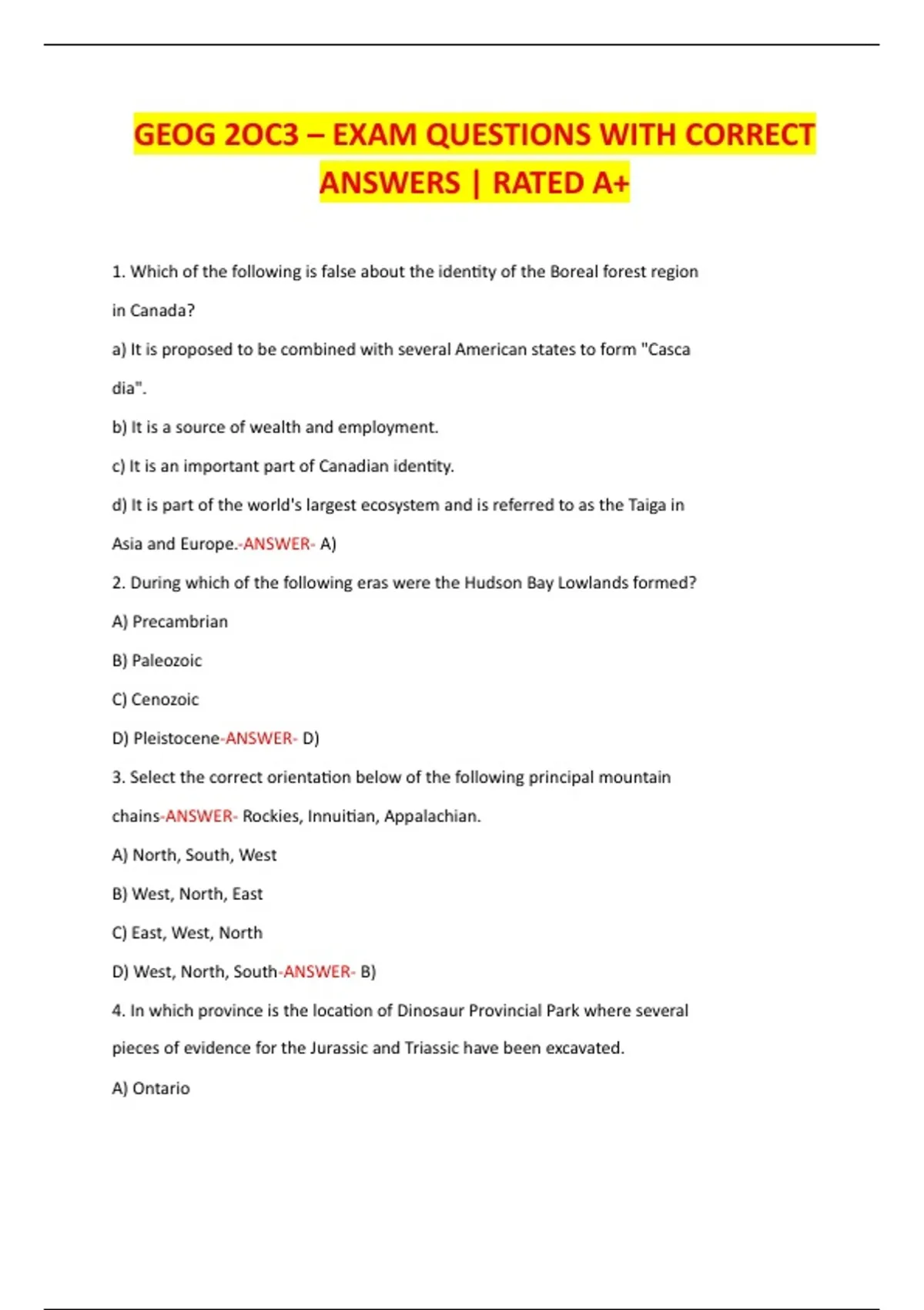 GEOG 2OC3 – EXAM QUESTIONS WITH CORRECT ANSWERS | RATED A+