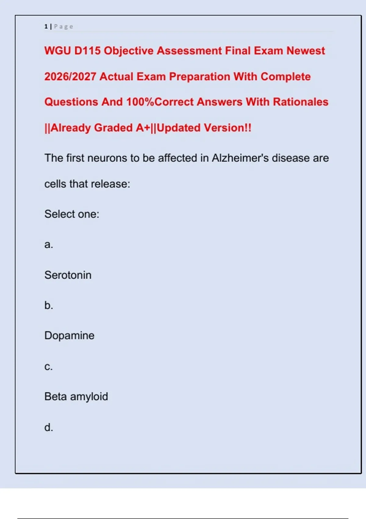 WGU D115 Objective Assessment Final Exam Newest