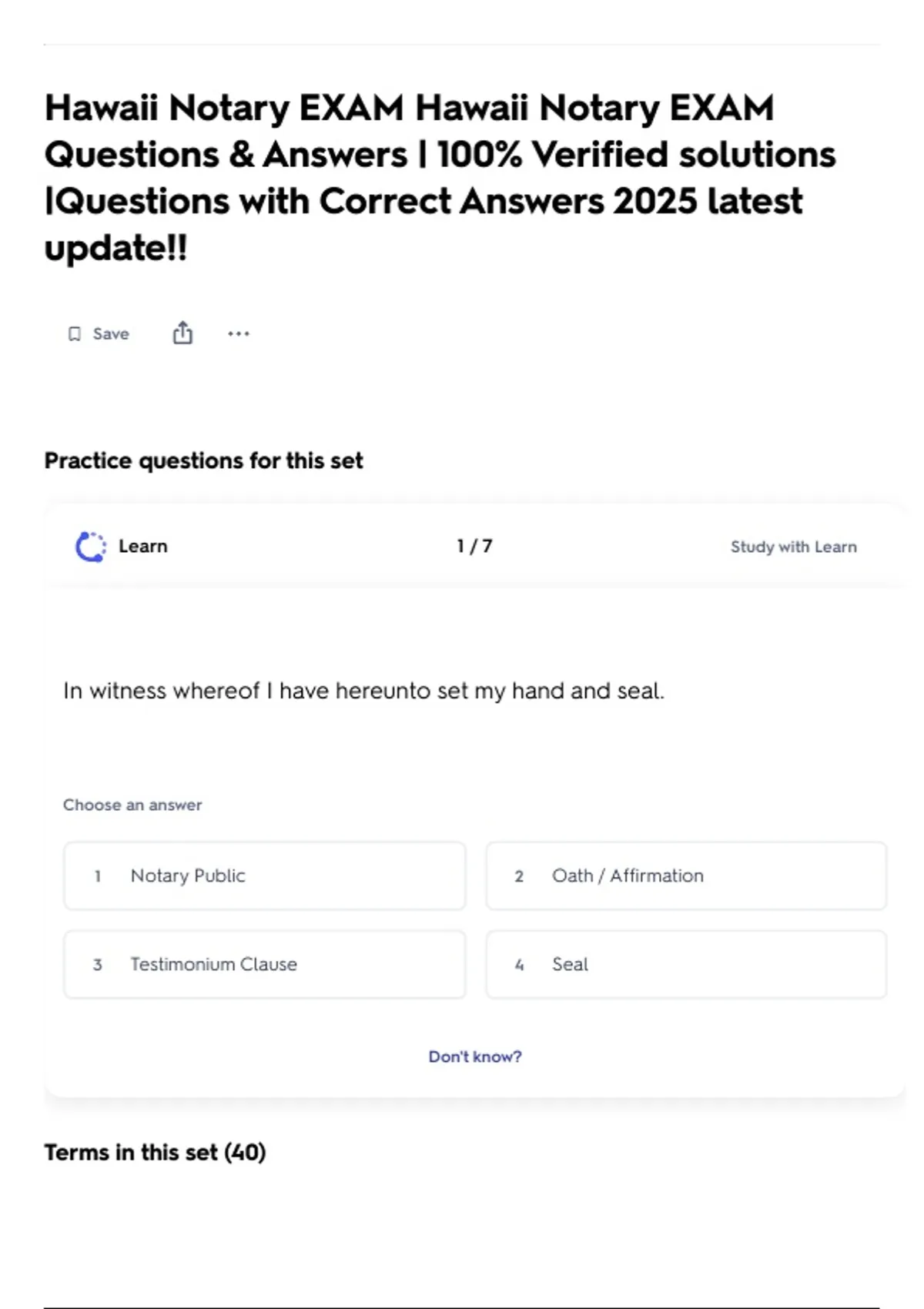 Hawaii Notary EXAM Hawaii Notary EXAM