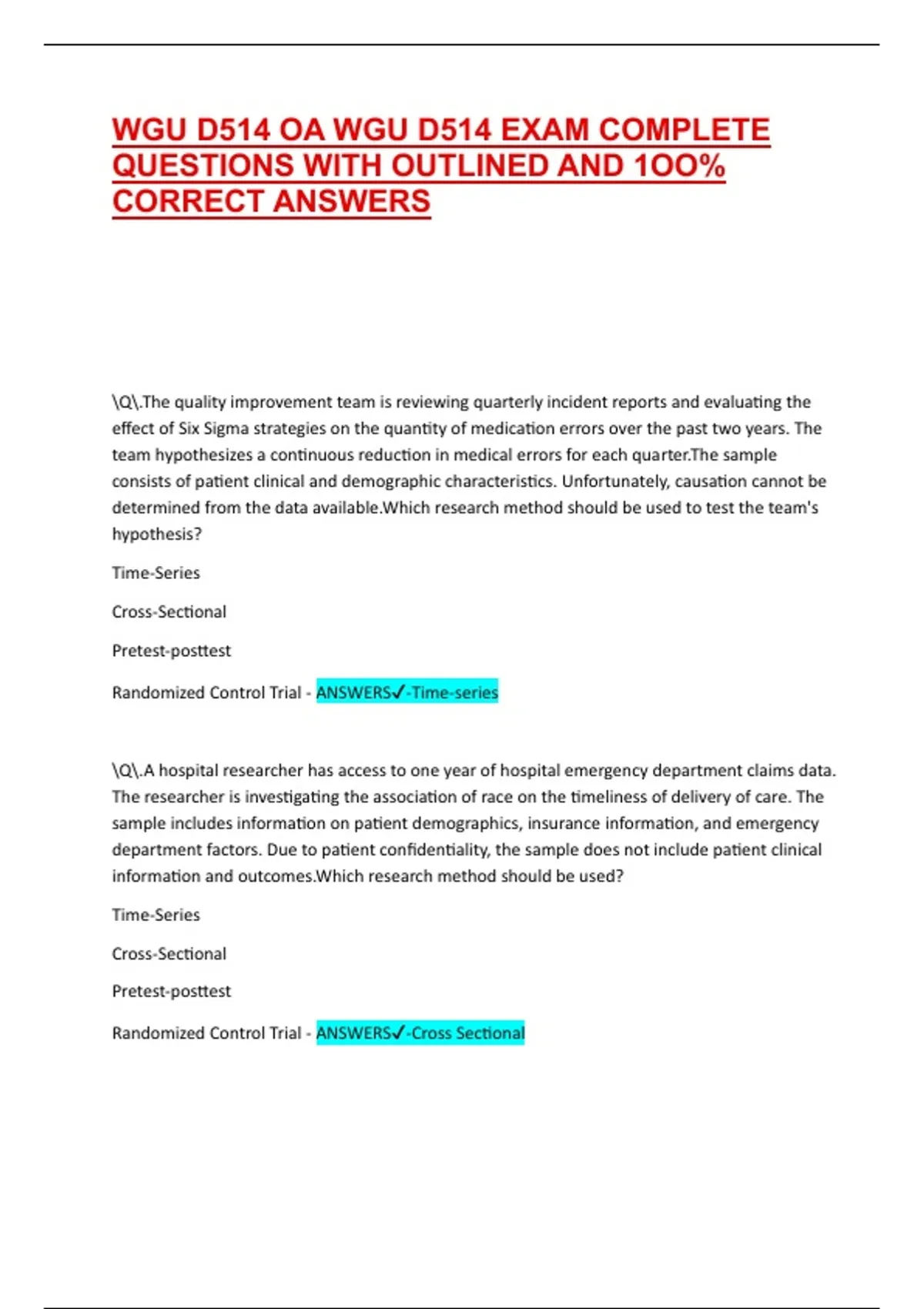 Randomized Control Trial - ANSWERS✔-Time-series